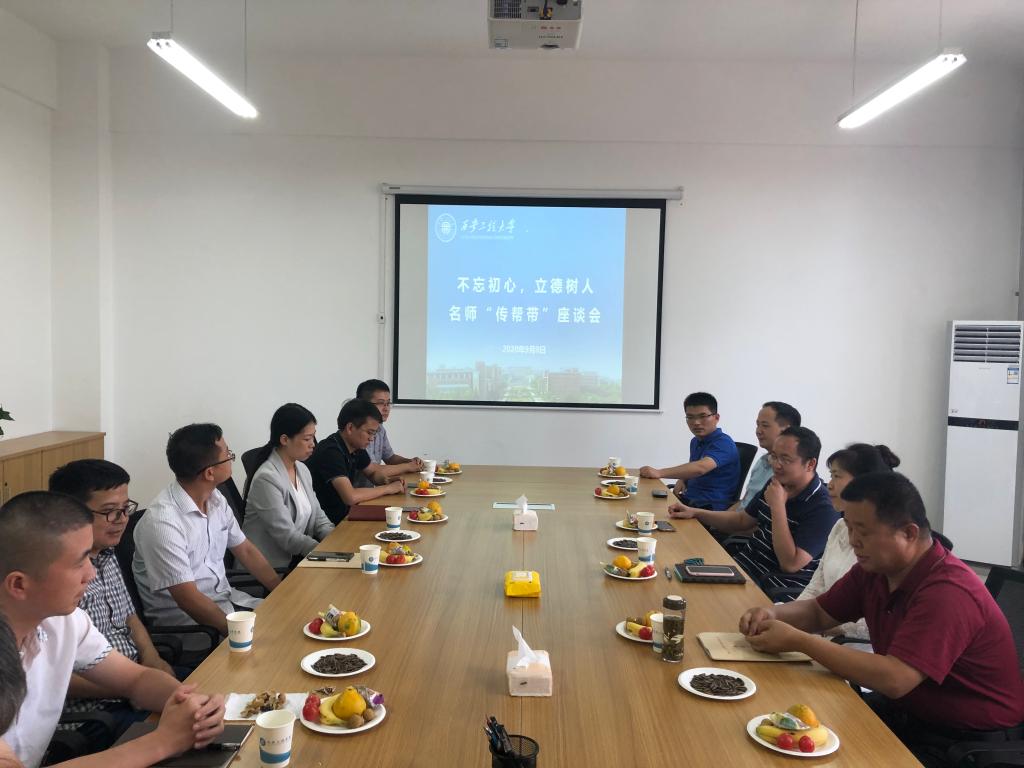 9月8日下午,jdb电子中国官方网站“不忘初心立德树人,名师‘传帮带’”座谈会在临潼校区7号楼310会议室举行,学院党委书记王鸣媛、学院分工会主席金守峰、部分优秀教师代表及青年教师参加了会议,会议由jdb电子中国官方网站分工会主席金守峰主持。
