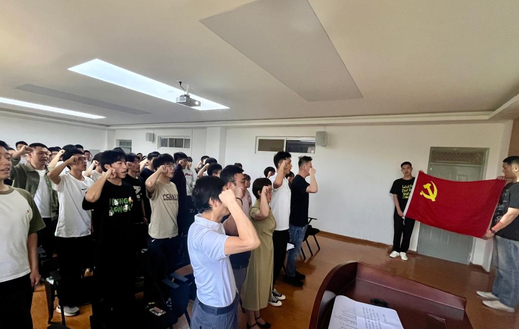 6月30日下午,在庆祝建党102周年之际,jdb电子中国官方网站举行新党员“七一”入党宣誓仪式,学院党委书记阚佩、副书记冯翊、全体支部书记和2023年新发展党员以及老党员代表出席了仪式。仪式由辅导员李良主持。