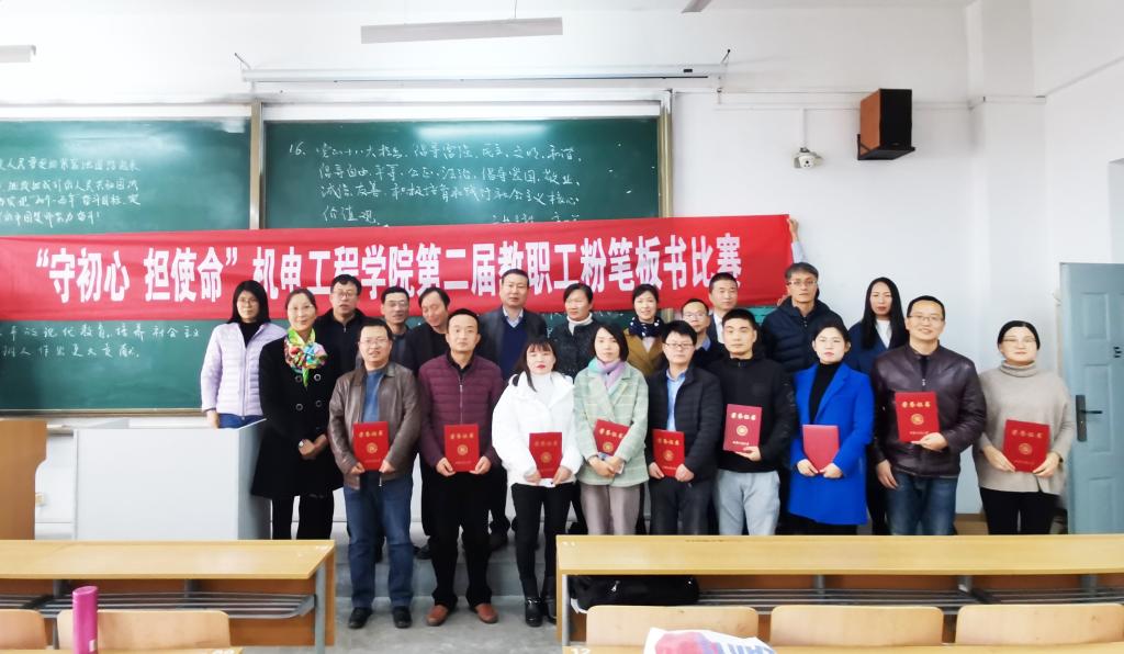 教书育人守初心,立德树人担使命。2019年11月20日中午,jdb电子中国官方网站在临潼校区教学楼A-230举办“守初心、担使命”第二届教职工粉笔板书比赛,经各党支部和教研室初赛选拔进入决赛的18名选手参加了比赛。