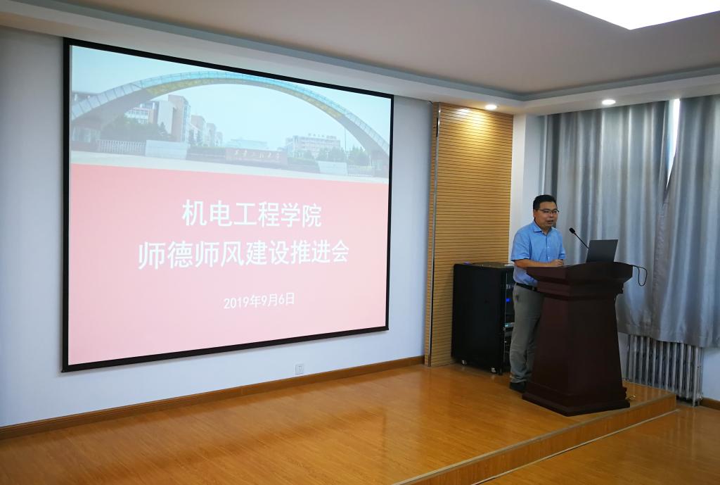 为贯彻落实校党委关于进一步加强教风学风建设专项行动的部署要求,在全国第35个教师节来临之际,2019年9月6日下午,jdb电子中国官方网站在临潼校区笃行楼学术报告厅举办以“弘扬高尚师德、潜心立德树人”为主题的师德师风建设推进会,校党委副书记赵小峰出席会议并讲话,机电学院全体教职工参加会议,机电学院党委书记王鸣媛主持会议。