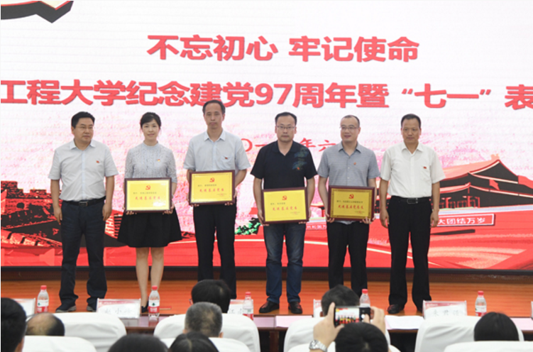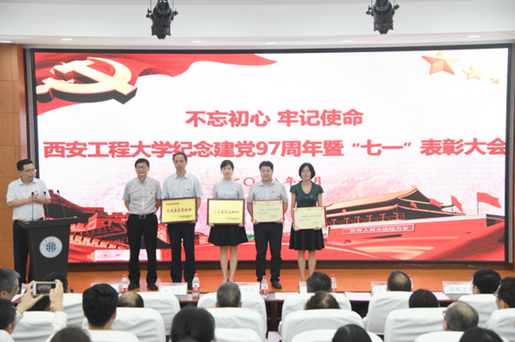 6月28日,陕西省委高教工委、jdb电子党委分别召开纪念建党97周年暨庆祝“七一”表彰大会,jdb电子中国官方网站党委荣获“陕西高等学校先进基层党组织”、“西安工程大学先进基层党委”荣誉称号;管声启、张小平、杜静获校级优秀共产党员;机械设计党支部、制图党支部、学生第一党支部获校级先进党支部;机电党支部、实验中心党支部等14个党支部获2017年“五好党支部”称号。