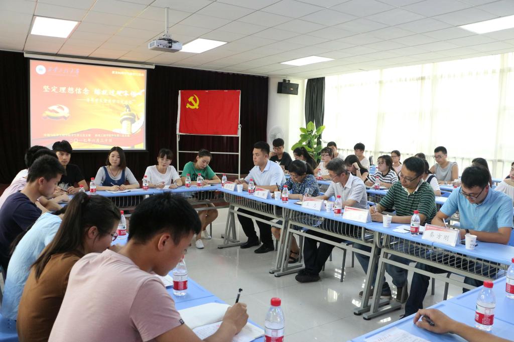 6月30日,学院学生第三党支部和环化学院学生第五党支部的学生党员共同举办了以“坚定理想信念,练就过硬本领”为主题的学习交流会。校党委宣传部部长王志、环化学院党委副书记袁群、机电学院党委副书记魏哲、环化学院学生第五党支部书记贾天昱、机电学院学生第三党支部书记秦方刚参加了学习交流会。