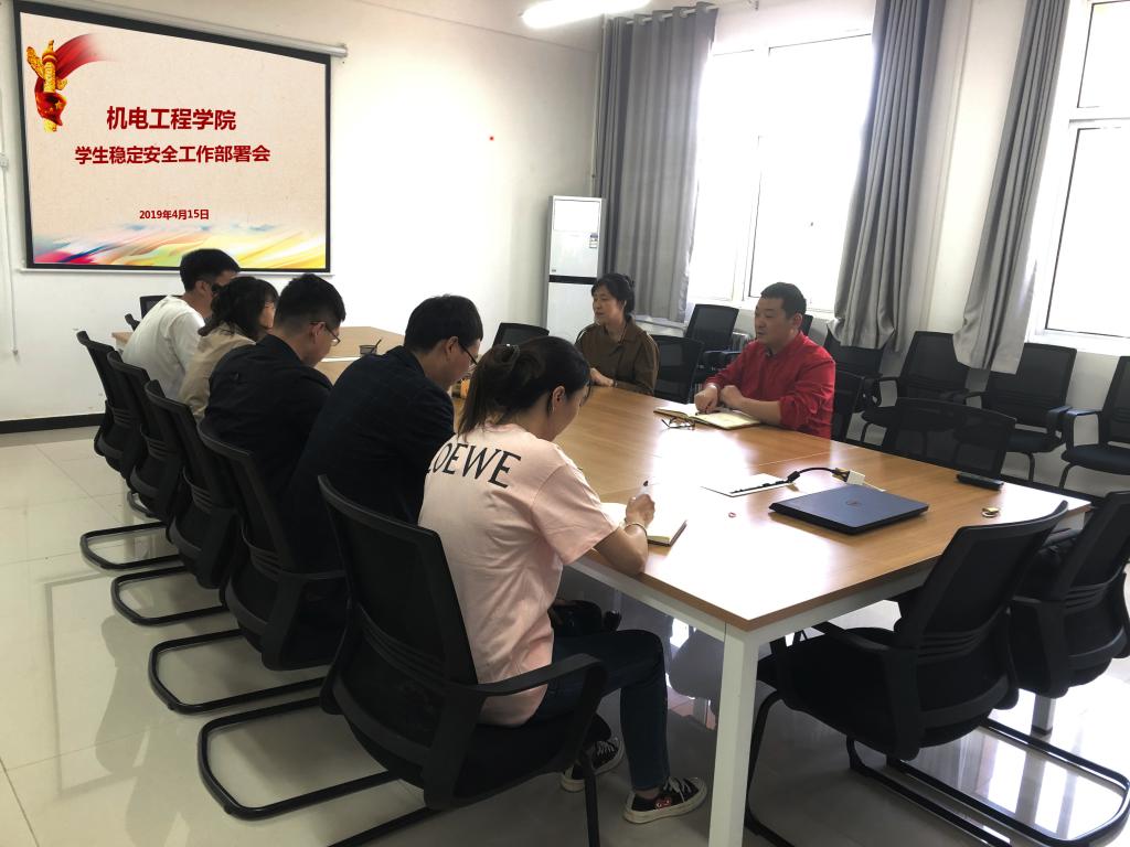 近期,学校党委对校园安全稳定工作、宣传思想工作作出一系列安排部署,机电学院以此为契机,加大对重点工作的推进落实力度,不断强化学院学工队伍的担当意识、协调能力、互助精神。