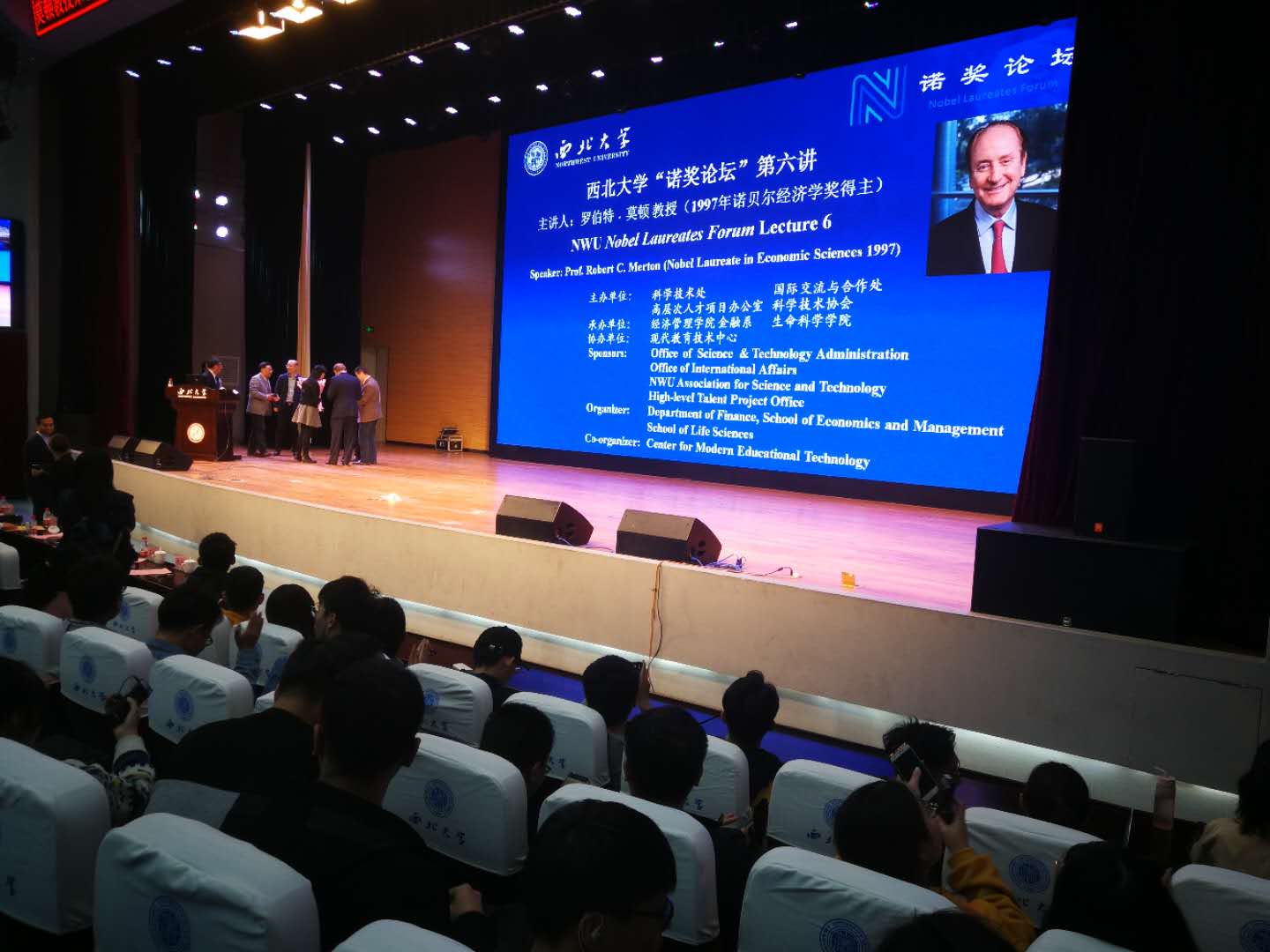 2018年9月至12月,jdb电子中国官方网站与西北大学、陕西师范大学等“双一流”高校相关机构平台建立联系,为2018级学生提供高端学术供给,开阔学生学术视野,增强学习热情。学院先后于9月26日,10月7日,10月25日组织200余人次学生前往西北大学参加由西北大学主办的“诺奖论坛”,聆听了2014年诺贝尔生理学与医学奖得主—爱德华·莫泽教授、2012年诺贝尔物理学奖得主—大卫·温兰教授与1997年诺贝尔经济学奖得主—罗伯特·莫顿教授做的学术报告。通过参加“诺奖论坛”,2018级新生零距离感受了科学大师的风采,对创新思维和学术研究有了更直观和深刻的理解。