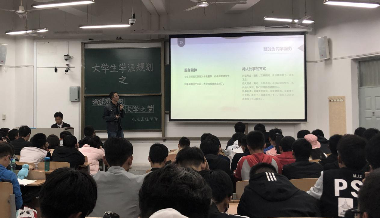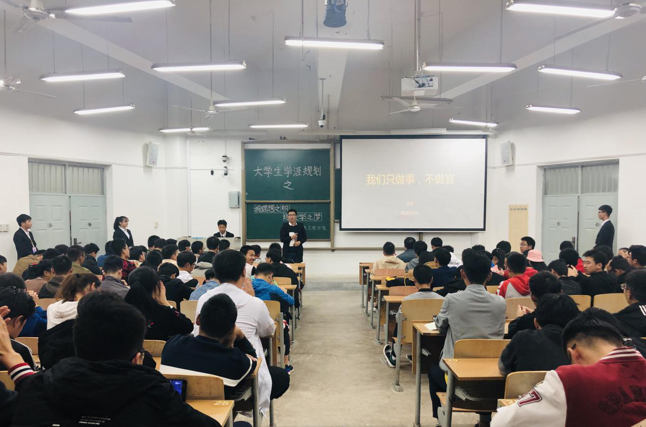 2018年10月31日晚,jdb电子中国官方网站在教学楼B-335开展了以“扬理想之帆 逐大学之梦”为主题的大学生学涯规划活动。16级研究生李文森、郑晗、王杰三名同学和2018级全体本科新生参与了此次活动。
