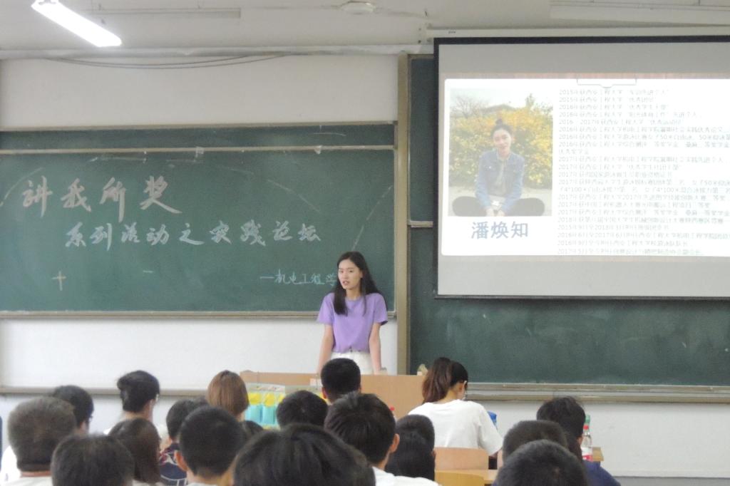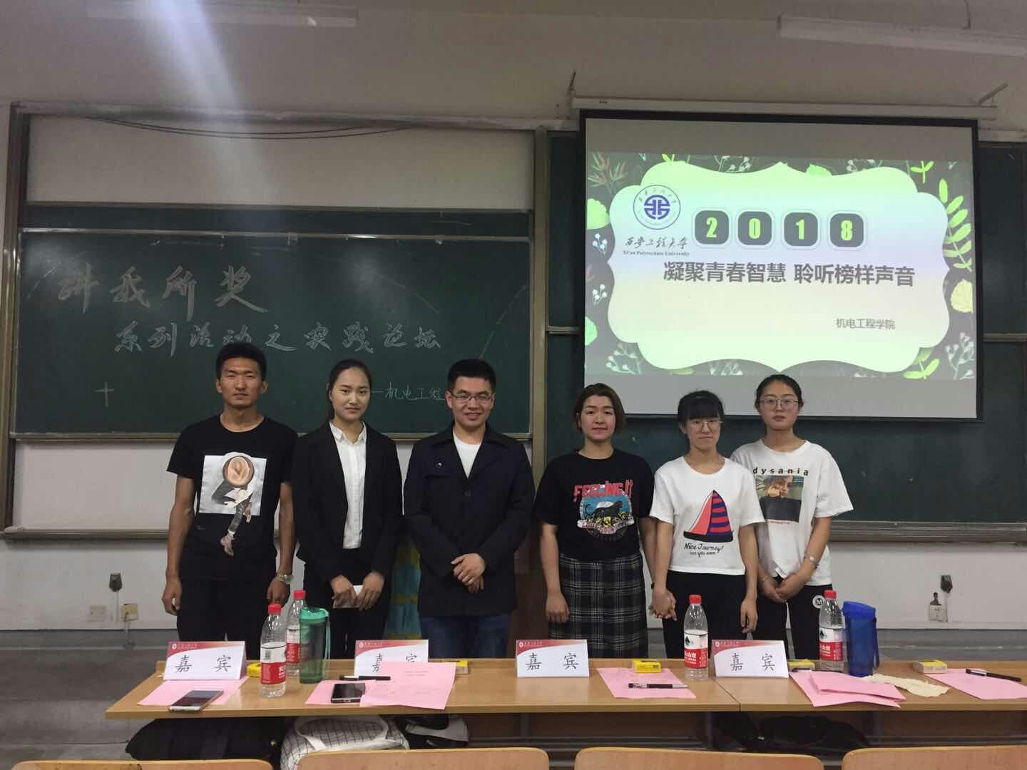 5月29日晚,jdb电子中国官方网站成功举办以“凝聚青春智慧,聆听榜样声音”为主题的“讲我所奖”经验分享系列活动。活动由“学霸讲堂”、“实践论坛”两个子活动构成,分别在临潼校区A202、A204教室同时进行。学院17级辅导员黄超、学院学生会主席郭星、优秀学生代表魏孟、李平、罗文量、潘焕知、郭安琪等十位同学及来自17级的200余名同学出席参与了本次活动。