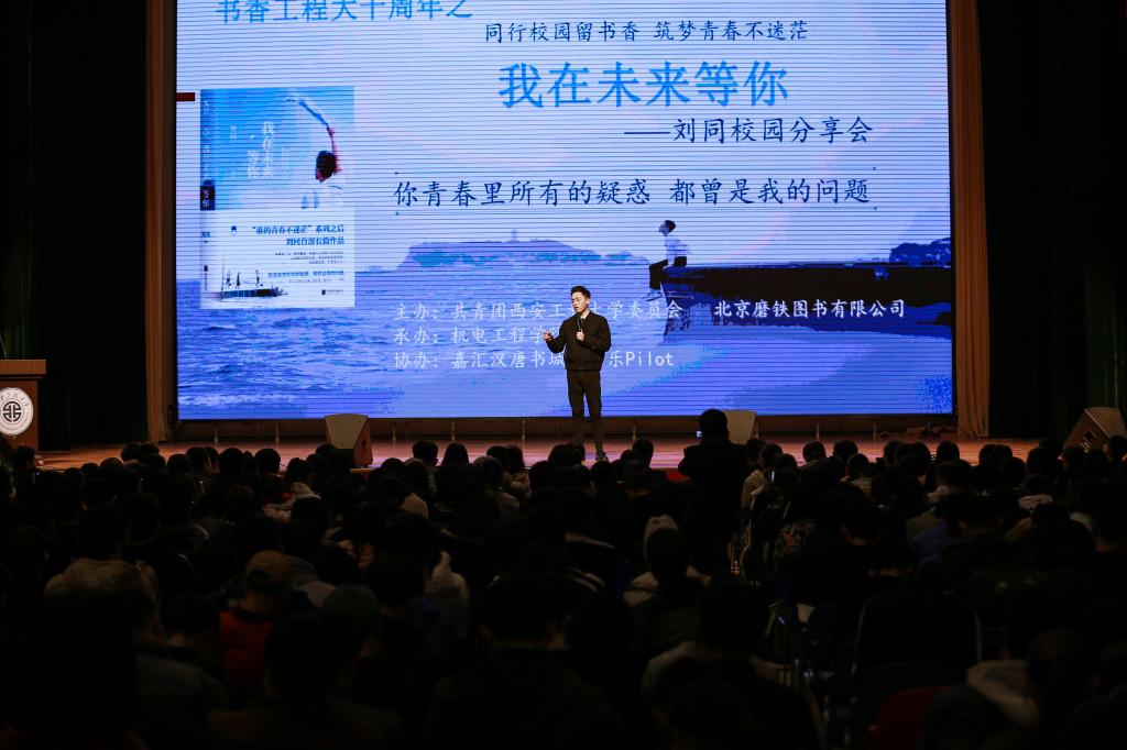 2017年11月29日下午15:00,由共青团西安工程大学委员会、北京磨铁图书有限公司主办,机电学院承办,嘉汇汉唐书城、百乐Pilot协办的第十届书香工程大系列活动之三——“同行校园留书香,筑梦青春不迷茫”刘同校园分享会在临潼校区大学生活动中心隆重举行。此次活动旨在创建良好的校园文化,营造浓郁的读书氛围,帮助学生树立远大人生目标,升华人生理想。机电学院全体辅导员和来自全校的近1000名学生参加了本次活动。活动由校团委书记王晓先主持。