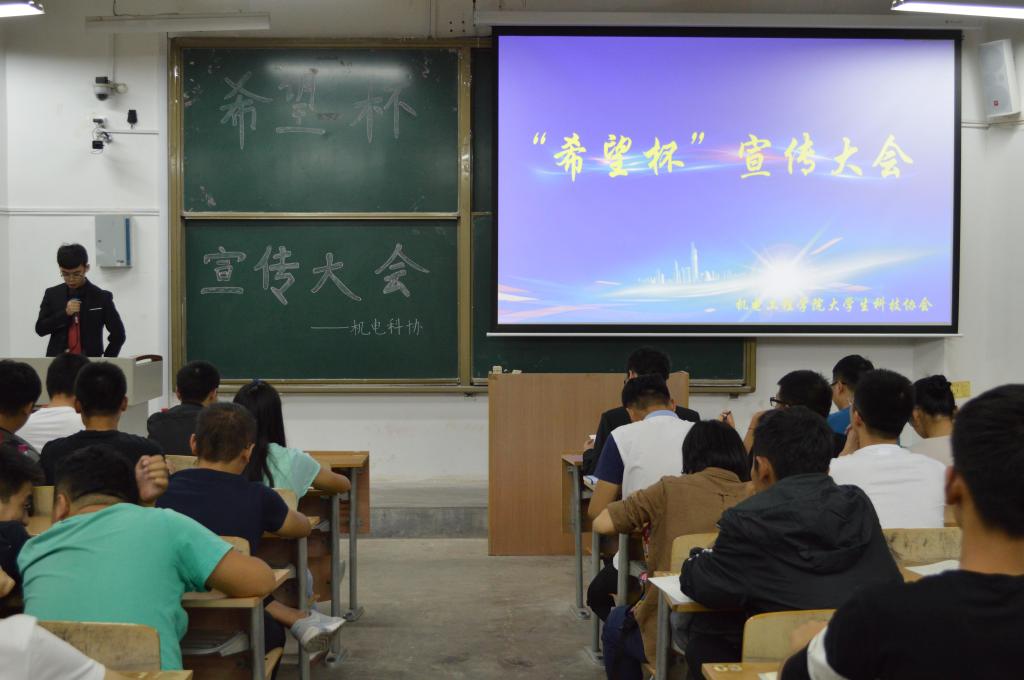 “希望杯”是“创青春”全国大学生创业大赛的别称,以“崇尚科学,追求真知,勤奋学习,锐意创新,迎接挑战”为活动的根本宗旨,旨在培养同学创新意识、创意思维、创造精神,从而帮助更多同学通过创新创业的实际行动来为中国梦贡献青春正能量。首先,由黄超致辞,他指出“希望杯”大学生创业大赛的重要性,强调当今社会是一个创新理念、创新意识日益深入并引起广泛共鸣的社会,广大青年学子应积极顺应潮流,力争取得属于自己的一席之地。随后,往届参赛队伍代表带领与会同学学习了“希望杯”的相关参赛要求,并就参赛过程中的一些细节问题做了说明。最后,学院科协主席孙吉做了总结,希望参会的各班班委广泛动员更多同学参与其中,力争为学院争光。