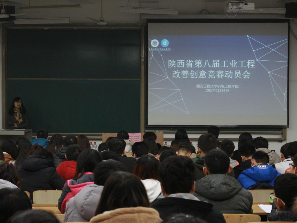 1月4日,机电学院召开陕西省第八届工业工程改善创意竞赛动员会,陕西省工业工程协会理事、校教务处副处长赵小惠,工业工程教研室主任刘文慧、工业工程教研室宋栓军、董雅文、董博超,实验中心陈珊,机电学院辅导员常传旭、秦方刚、李良以及学院学生代表300余人参加了动员会,动员会由常传旭主持。