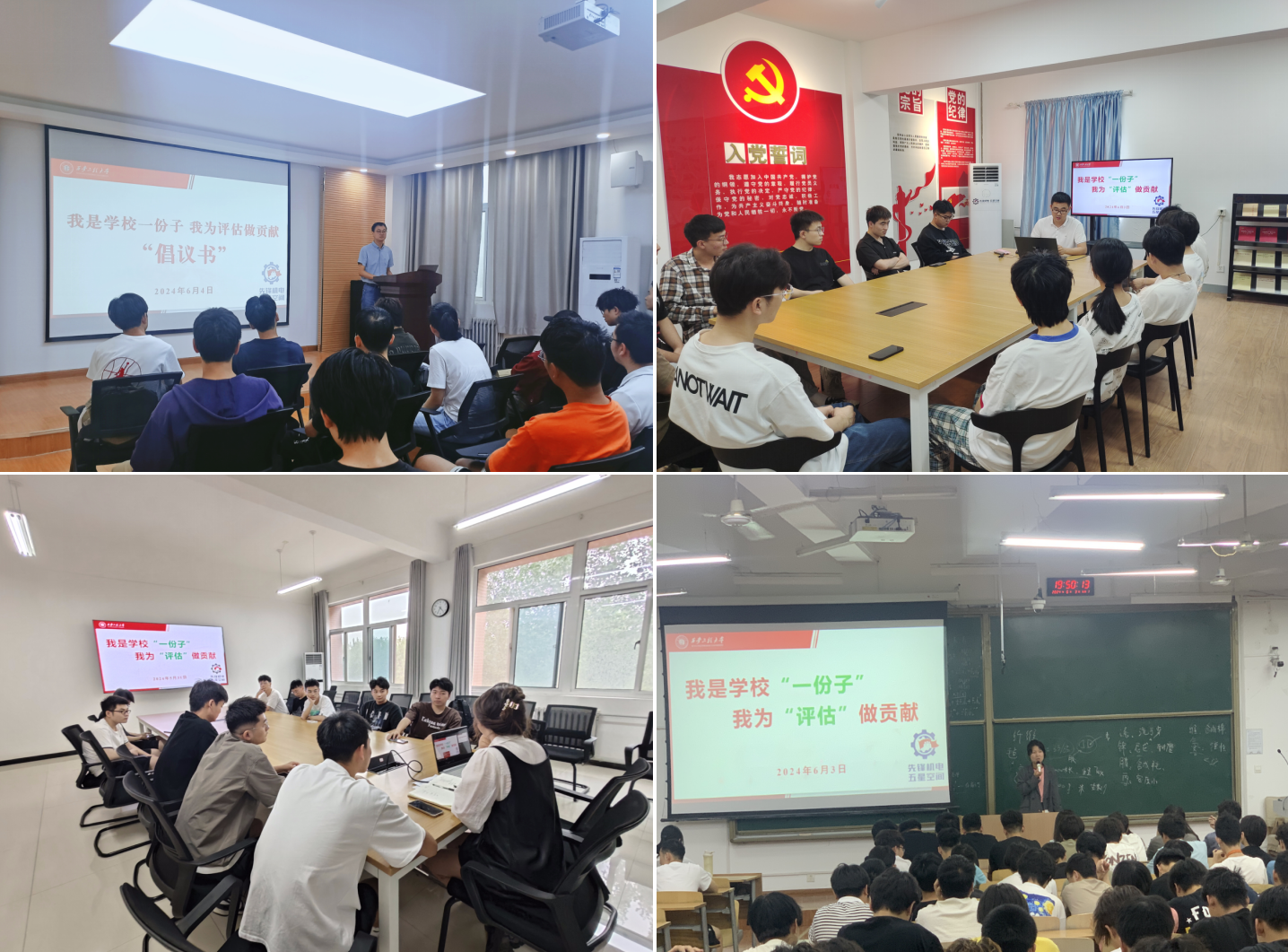 分层级领学,深学细研应知应会。5月28日,学院通过“XPU先锋机电”公众号发布了《关于“我是学校一份子 我为评估做贡献”的倡议书》,号召全体学生积极参与到学校各项迎评工作中,努力展示机电学子风采。5月28日-6月4日,学院各年级辅导员分层级通过年级大会、舍长大会、主题班会、班团例会等形式对《西安工程大学审核评估应知应会》进行了原文学习,全体学生认识到本科教育教学审核评估的背景、目的和重要性,明白了评估工作与学生息息相关,要以主人翁的姿态、用新时代青年的实际行动为教育教学审核评估工作争光添彩。