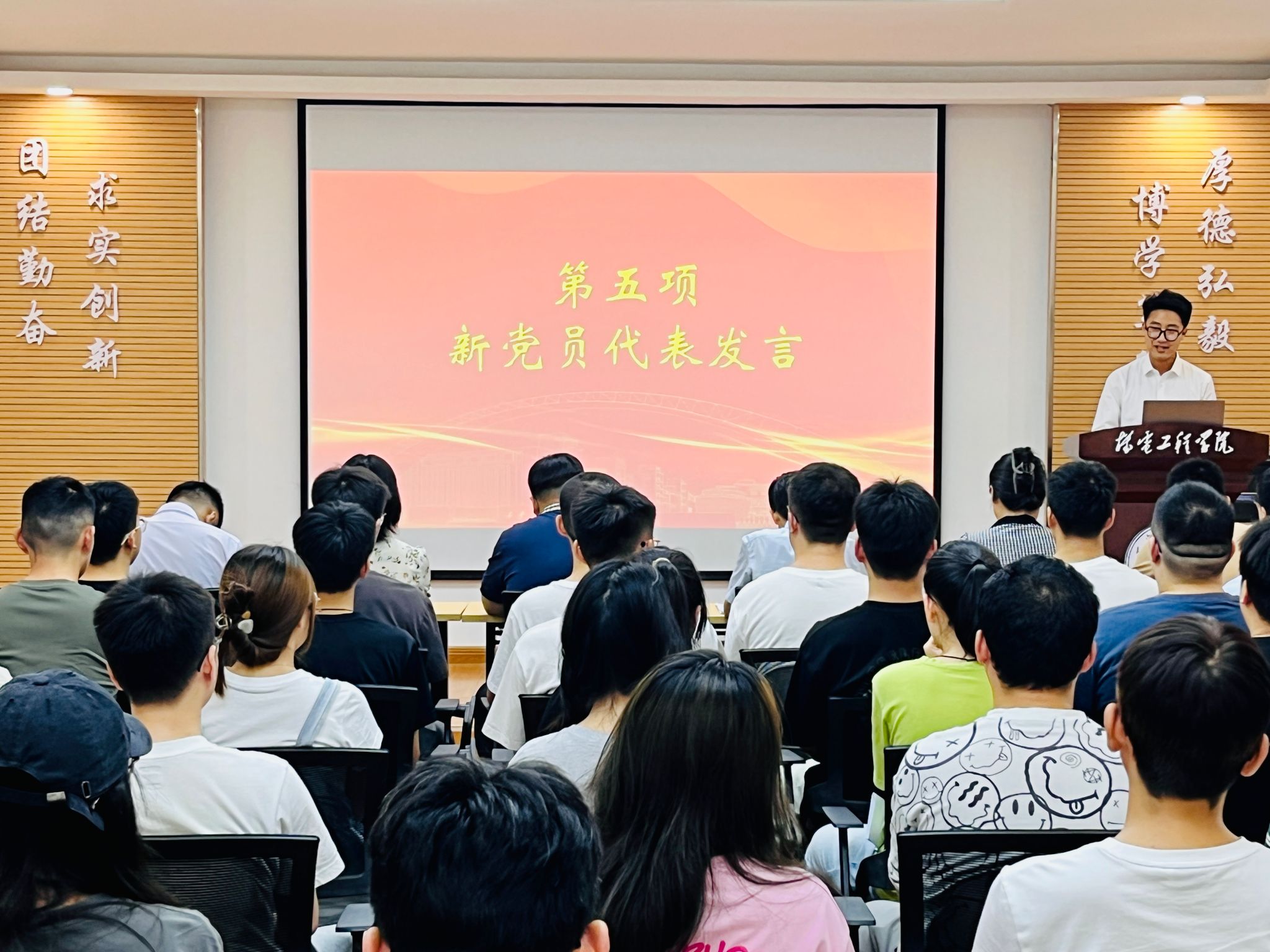 仪式结束后,学院党委书记阚佩结合近三个月的党纪学习教育,为新党员做了题为《筑牢纪律之基,彰显忠诚担当》的专题党课。他指出:对于学纪,要做到明方向、强筋骨、修初心;对于知纪,要保持敬畏心、守底线、自律性;对于明纪,要做到懂规矩、知敬畏、守规矩;对于守纪,要勇于担责任、践宗旨、敢作为。希望全体党员坚守纪律底线,以实际行动践行忠诚干净担当,为推动学院高质量发展再上新台阶贡献青春力量。(撰稿:秦方刚 审稿:阚佩)