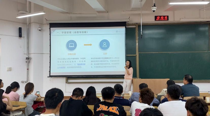 党琳宁从学籍管理、考试管理、课堂学习文明公约等三方面介绍了jdb电子学籍管理规定,她以现实案例为戒,提醒全体新生要增强纪律观念,以德修身,勤学不辍。