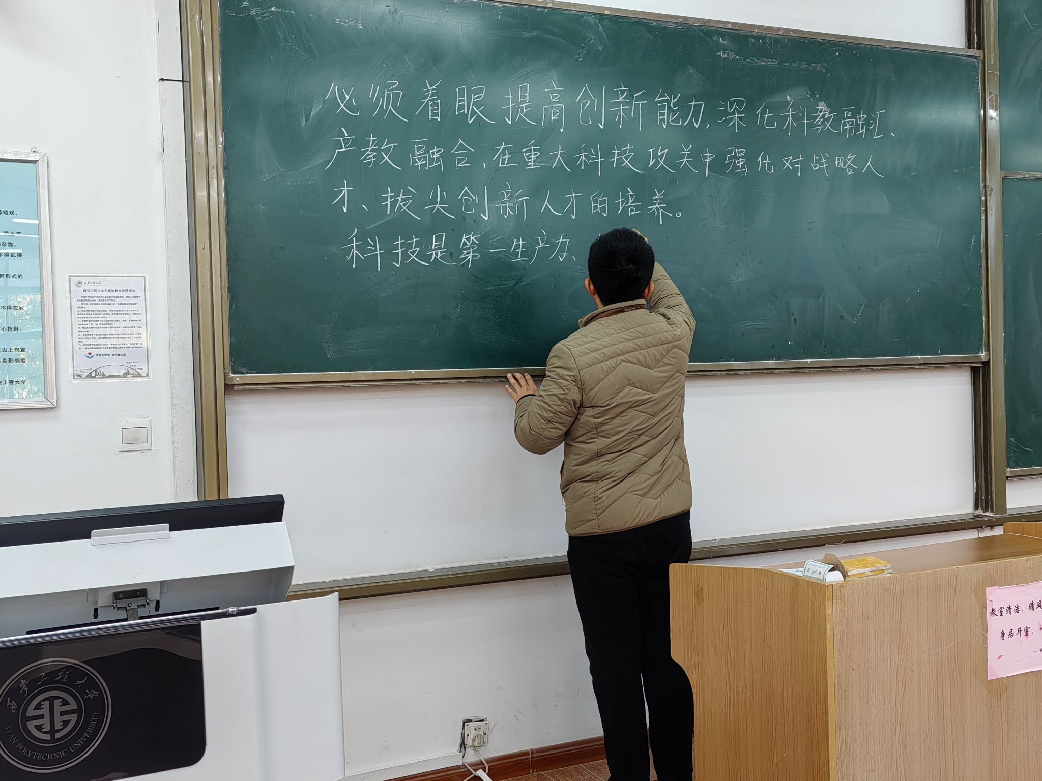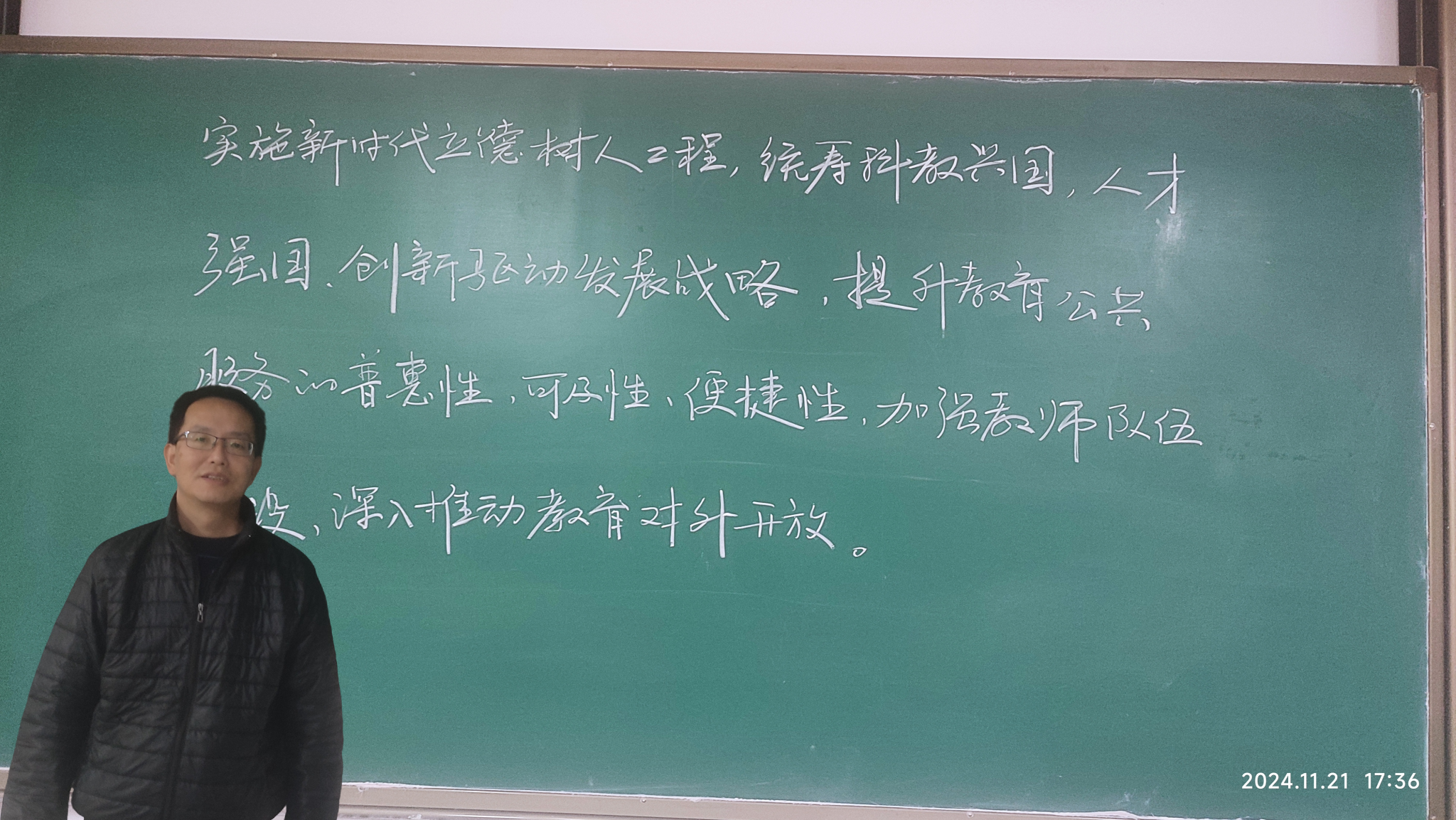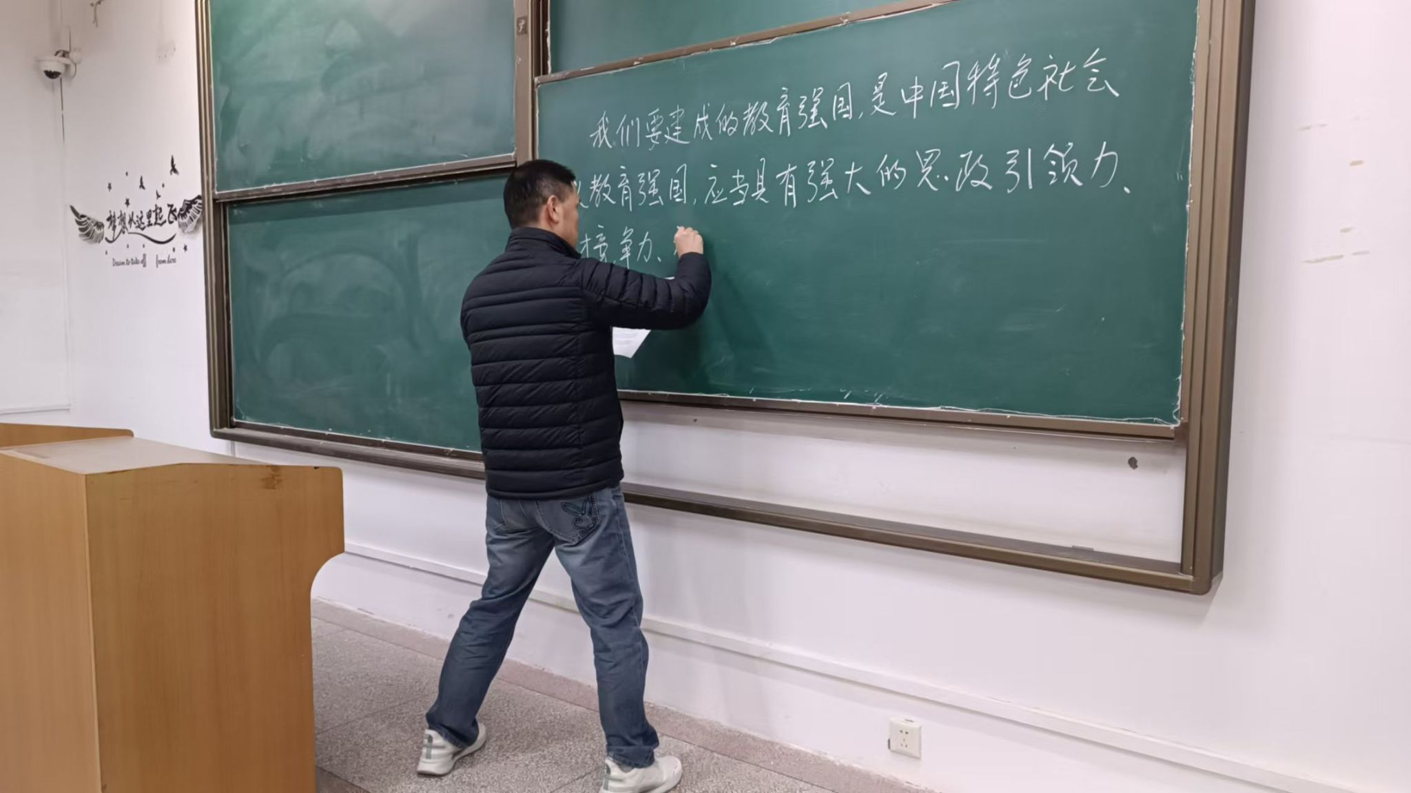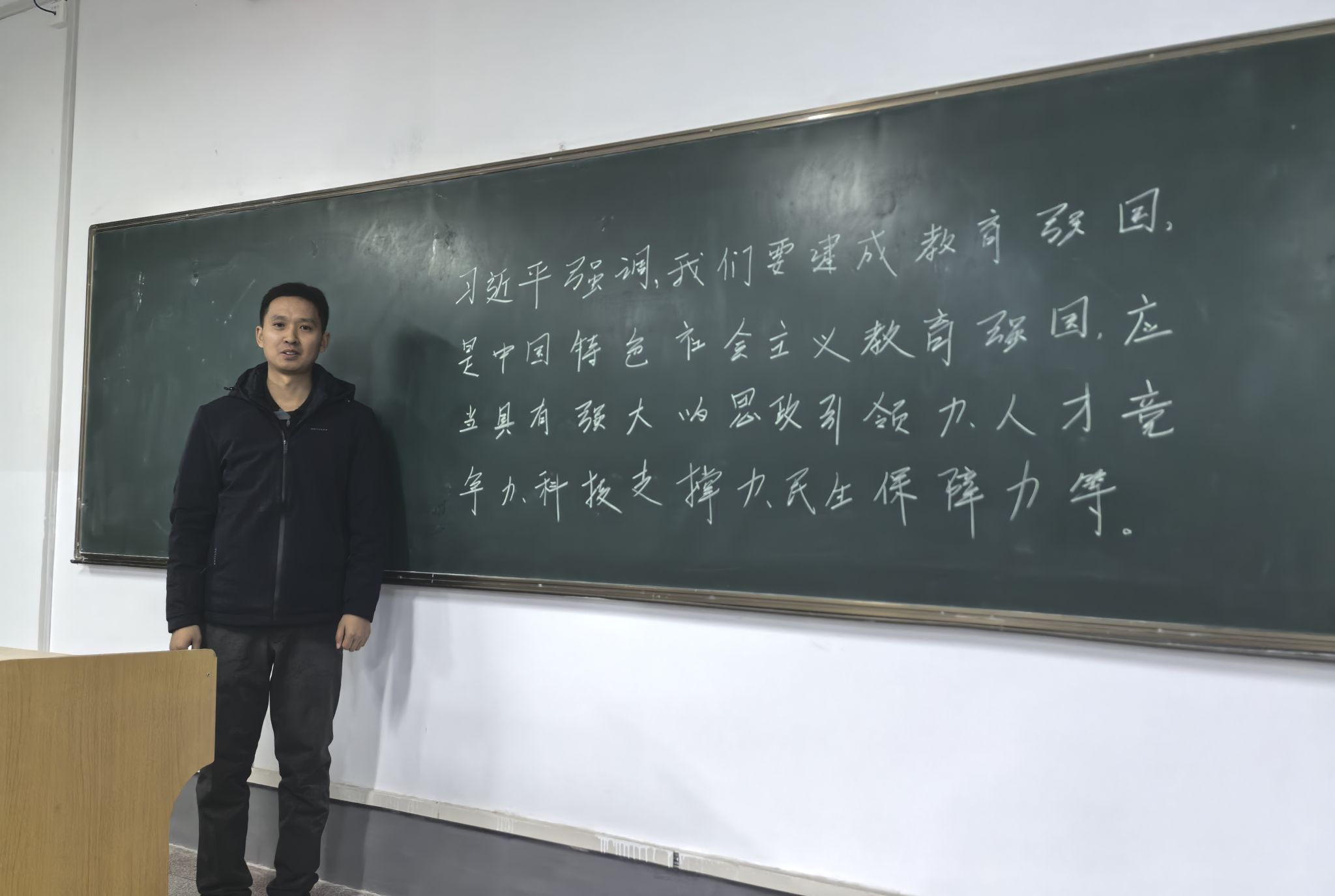 jdb电子中国官方网站已经连续举办六届教职工粉笔板书比赛。本次活动受到学院教职工的热烈响应,纷纷利用课余时间深入学习习近平总书记系列讲话、党的二十大精神和党的二十届三中全会精神等内容,在教室或教研室勤练粉笔板书,对理论水平和教学能力的提升起到了积极的促进作用。(撰稿:李良 审核:阚佩)