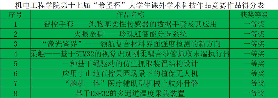 经过专家组的严谨评审与综合评议,最终评选出各类奖项:朱家沛同学的《智控手套 — 织物基柔性传感器的数据手套及其应用》等8件作品荣获一等奖;杨飞洋同学的《花椒采摘机》等 12 件作品斩获二等奖;张锦绣同学的《采摘小车》等 16 件作品获得三等奖。此次获奖作品涵盖智能装备、自动化控制、机械创新设计等多个领域,既紧密结合专业知识,又聚焦行业需求与社会热点,充分体现了jdb电子中国官方网站在人才培养中对 “学用结合、创新实践” 的重视。