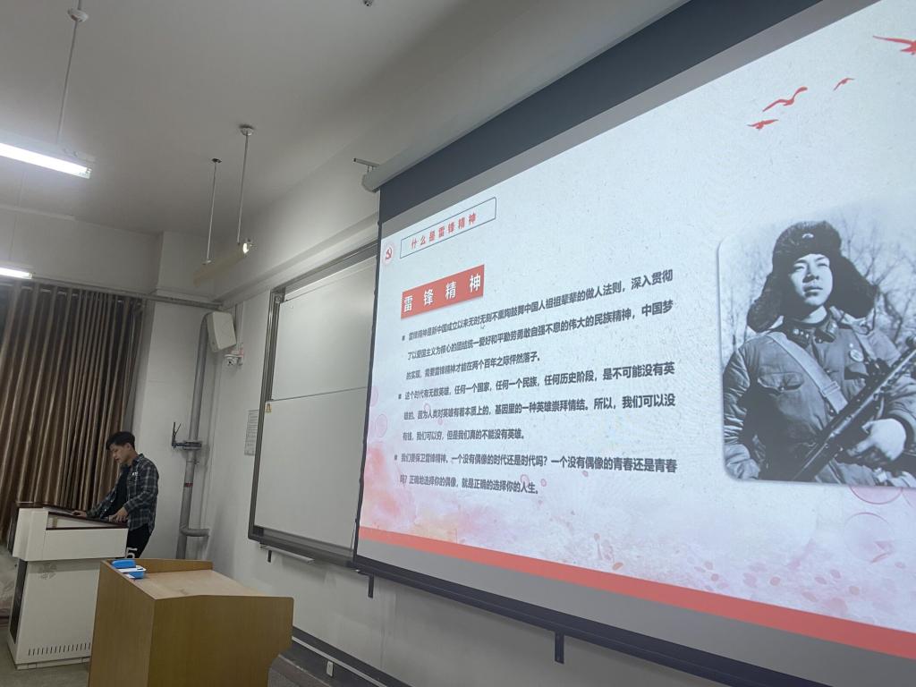 3月5日,jdb电子中国官方网站开展“学习雷锋好榜样,传递青春正能量”主题团日活动,通过重温雷锋同志生平事迹,加深同学们对雷锋精神的理解和感悟,激发不怕吃苦、甘于奉献的志愿服务精神。“爱国奋进新时代”导师团部分学生与2020级全体学生及学院部分“十四运”志愿者参与此次活动。