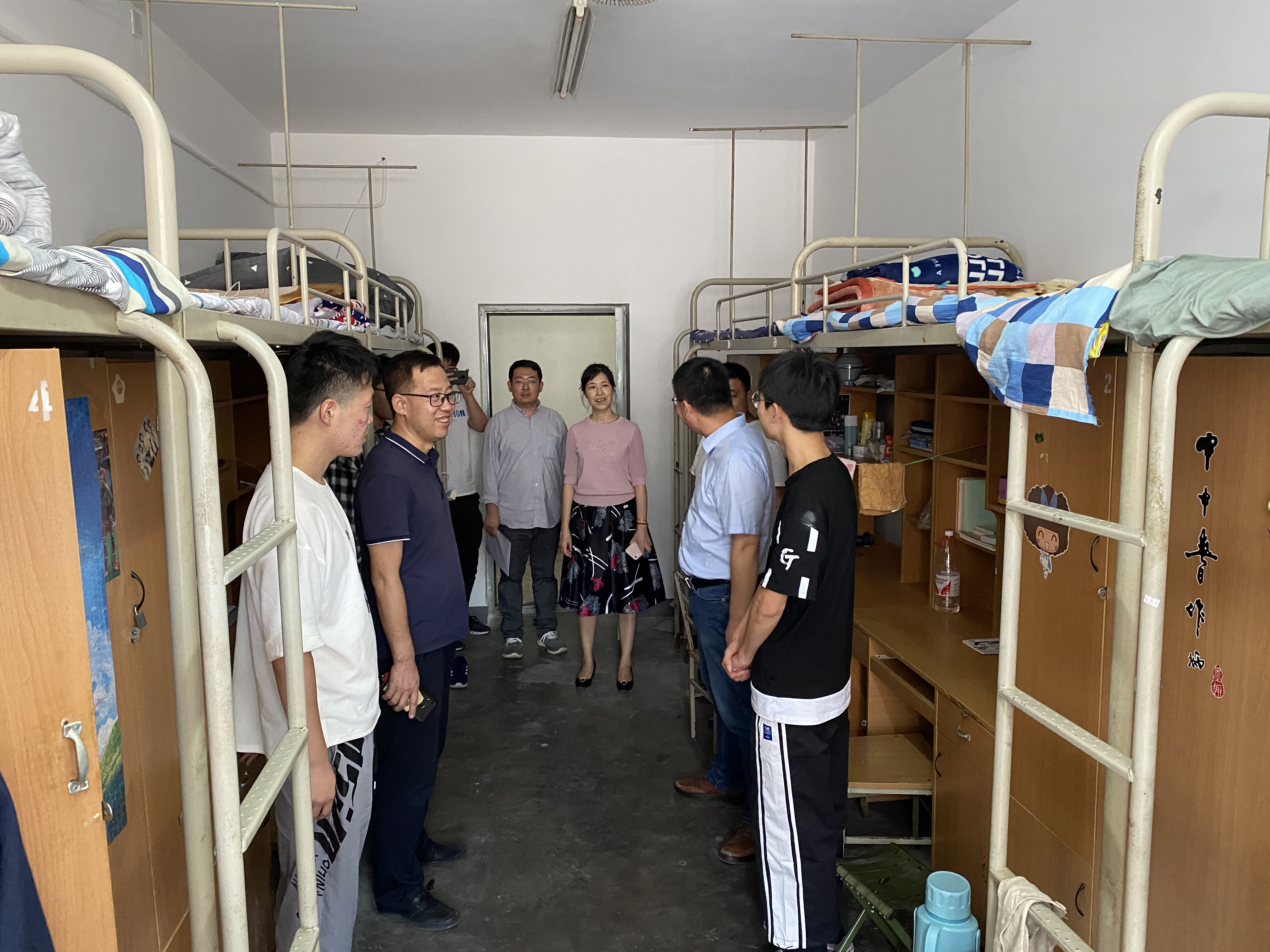 为及时了解新生入学的住宿和生活情况,引导新生尽快适应新环境、新生活,9月15日下午,jdb电子中国官方网站党政班子成员王鸣媛、肖渊、张守京、冯涛带领全体辅导员深入学院2020级新生宿舍,看望慰问新同学。