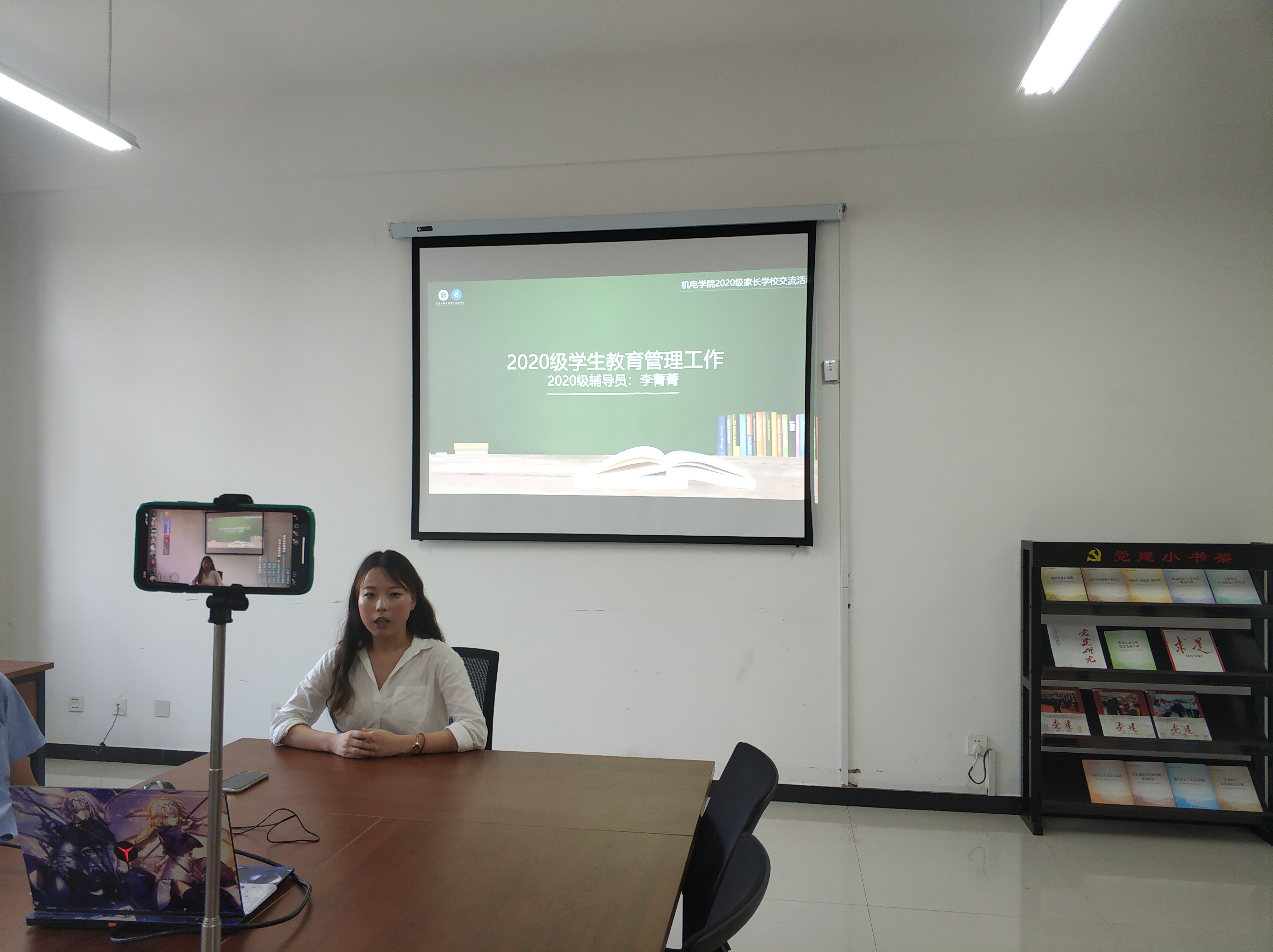 9月15日下午,jdb电子中国官方网站2020级新生家校交流会在学院党团活动室举行。根据疫情防控工作要求,学院300余名2020级本科新生及部分家长在线上参加此次交流会,活动采用抖音直播形式举行。学院党委书记王鸣媛、学院党委副书记冯涛、副院长肖渊、资助专项工作辅导员刘鹏、2020级新生辅导员李菁菁参加会议。本次活动由院党委副书记冯涛主持。