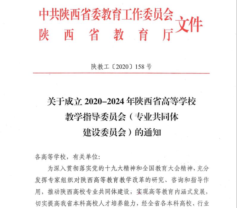近日,陕西省委教育工委、陕西省教育厅发布了《关于成立2020-2024年陕西省高等学校教学指导委员会(专业共同体建设委员会)的通知》,jdb电子中国官方网站胥光申教授入选“高等学校专业设置与教学指导委员会机械类工作委员会”,并担任该委员会副主任委员。