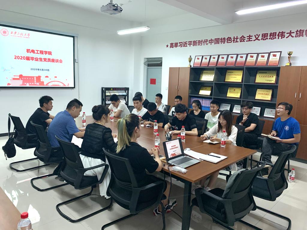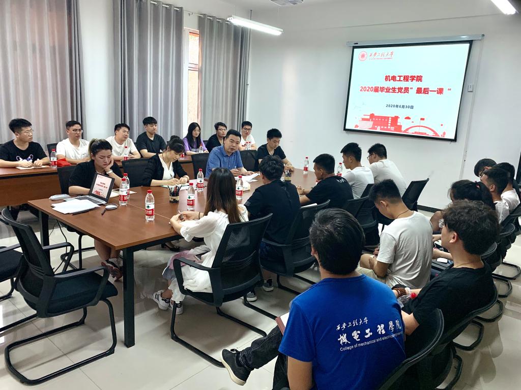 2020年6月30日,在建党99周年来临之际,jdb电子中国官方网站党委举办2020届本科毕业生党员座谈会,校党委副书记赵小峰以“回顾党的光辉历史,争做新时代合格共产党员”为题为学生党员代表讲授“最后一课”。学院党委书记王鸣媛、学生第三党支部书记秦方刚以及20余名毕业生党员聆听了党课。
