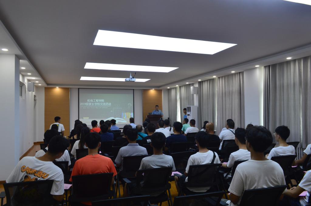 8月25日下午,为了让学生和家长更好地了解西安工程大学,了解jdb电子中国官方网站,学院召开了“家校交流会”。学院党委书记王鸣媛在致辞中简要介绍了机电学院落实立德树人根本任务、不断提高人才培养质量的重点举措,希望2019级学子以饱满的热情投入人生新阶段,开启新的学习和生活;院长胥光申从学院历史沿革、专业特色、教学设施、教育成果等方面向新生家长全景式展现了学院的教育教学情况;教务员王程熙、团总支书记刘沫含、辅导员刘鹏分别就学籍管理规定、校园文化建设及学生社团管理制度、资助政策等内容进行了宣讲;2019级本科生辅导员杜静与家长交流了关于学生培养的想法,并向新生送上美好的祝愿。