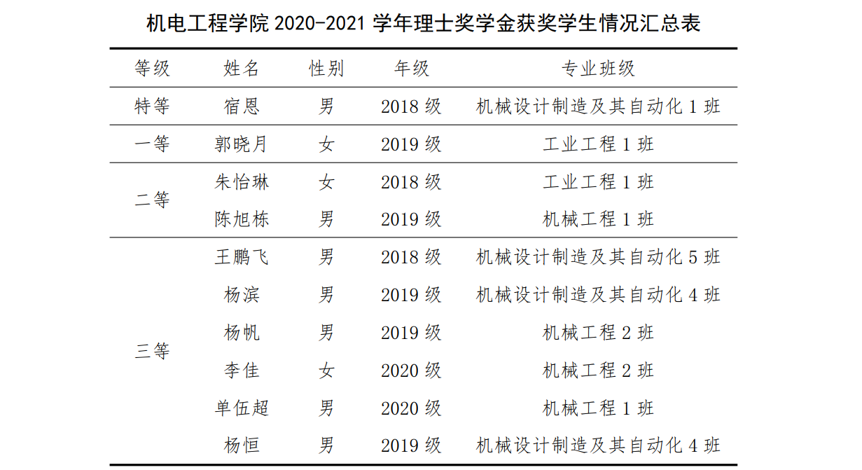 根据西安工程大学《关于做好2020-2021学年各类社会专项奖学金评审工作的通知》文件精神,jdb电子中国官方网站切实开展理士奖学金评审工作,现将学院拟推荐报送名单公示如下: