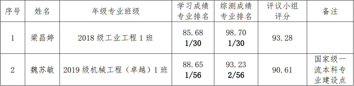 根据学校《关于做好2020-2021学年国家奖学金评审工作的通知》要求,jdb电子积极开展2020-2021学年国家奖学金评审工作,经专业评定、年级初审、学院复审,拟推荐梁昌婷、魏苏敏参评国家奖学金。现予以公示,如有异议,请在9月28日前向jdb电子中国官方网站学生工作办公室反映。