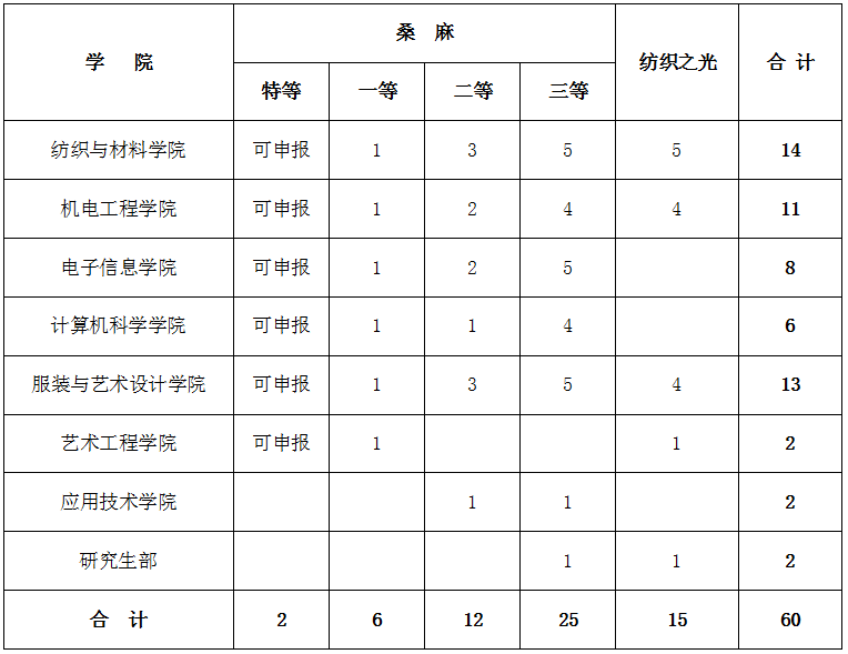 2、“纺织之光”奖学金共评选15名,金额为:8000元/年·生。